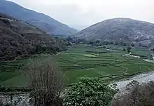 В долинах преобладают культурные ландшафты, леса (вечнозелёные лавролистные, а также с преобладанием сосны юньнаньской) сохранились на менее доступных склонах гор.