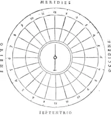 Георгий Агрикола в книге «О горном деле и металлургии»[1](ориг. De re metallica, 1556) описал принципы работы горного компаса. Также Агриколой было предложено именовать направления простирания рудных тел в соответствии с названиями соответствующих преобладающих ветров[2] (см. иллюстрацию).