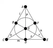 Эта знаменитая геометрия инциденций была разработана итальянским математиком Джино Фано. В его работе[8] по доказательству независимости множества аксиом для проективного n-пространства, которую он разрабатывал [9], он создал конечное трёхмерное пространство с 15 точками, 35 прямыми и 15 плоскостями, в котором каждая прямая содержит только три точки [10]. Плоскости в этом пространстве состоят из семи точек и семи прямых, которые известны как плоскости Фано.