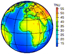 Земля излучает тепло в размере около 47 ТВт (тераватт),[2], что составляет менее 0,1 % от мощности поступающей солнечной энергии. Часть этого тепла приходится на тепло, выделяющееся при распаде радиоактивных изотопов в недрах Земли. Существуют различные оценки этой энергии : от ~10 ТВт до ~30 ТВт.[3]