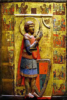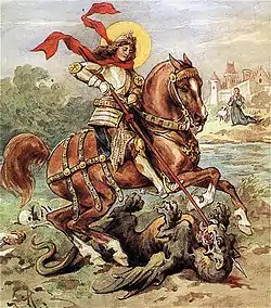 Гео́ргий Победоно́сец (Свято́й Гео́ргий, Гео́ргий Каппадоки́йский, Гео́ргий Ли́ддский; греч. Άγιος Γεώργιος) — христианский святой, великомученик, наиболее почитаемый святой с таким именем и один из наиболее известных святых в христианском мире. Существует множество вариантов его жития, как канонических, так и апокрифических. Согласно каноническому житию, пострадал во время Великого гонения при императоре Диоклетиане и после восьмидневных тяжких мучений в 303 (304) году был обезглавлен. Одним из самых известных сказаний о его чудесах является «Чудо о змие»[2].