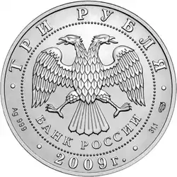 Серебряные 3 рубля 2009 года (аверс и реверс, анциркулейтед)