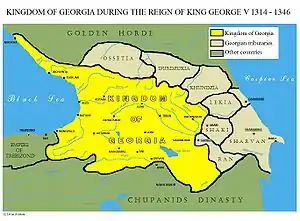 В 1322/1323 гг. Георгий V установил отношения с французским королём Филиппом VI Валуа, которому царь обещал 30 тысяч воинов для освобождения Святой земли[11]. Интенсивные торговые взаимоотношения Грузии с Генуей и Венецией способствовали экономическому подъёму и развитию страны.