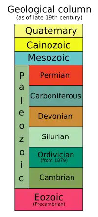 | Кембрийский | 541,0 ± 1,0 млн | Появление большого количества новых групп организмов («Кембрийский взрыв»). | ||||
