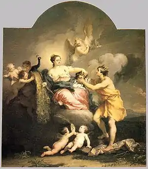 В сценах любовных похождений Зевса она может изображаться подглядывающей из-за облаков, либо же подъезжающей на колеснице, чтобы прервать свидание[92].