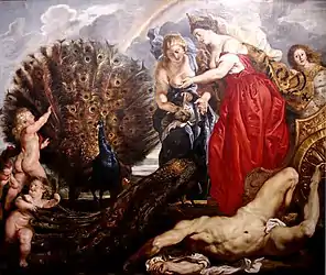 Распространено изображение Геры в сцене «Суд Париса», в сценах из мифов о Геракле, Ио. Известно изображение финального эпизода истории Ио: стоглазый великан Аргус, посланный ею стеречь любовницу мужа, убит Гермесом. В эпоху барокко Аргус изображается мертвым с рассыпанными глазами. Амуры подбирают их и передают Гере, которая помещает их на хвосты павлина (Х. Голциус, П. П. Рубенс, Я. Йорданс, А. Блумарт, Н. Пуссен и др.).