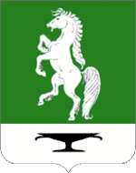 «В зелёном поле с серебряной обременённой чёрной чашей оконечностью серебряный восстающий конь».