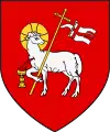 W polu drugim Baranek Boży srebrny (biały) ze złotą aureolą z czerwonym krzyżem wewnątrz, krwawiący do kielicha złotego, podtrzymujący nogą przednią chorągiew srebrną (białą) z czerwonym krzyżem osadzoną na drzewcu złotym zwieńczonym takimż krzyżem.