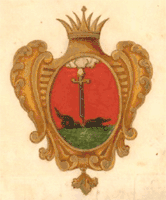 Имеетъ старый гербъ. Въ красномъ полѣ три золотые большіе лука.ПСЗРИ, 1781, Закон № 15162[7]