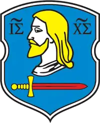 Герб надаем месту нашему Витебскому в блакитном полю образ Спаса Збавителя нашего, и при том зараз трохи нижей меч голый червоный, что ся мает разуметь кровавый.