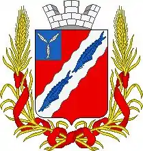 В верхней части щита герб Саратовский. В нижней — в червленном поле две серебряные крестообразно расположенные стерляди, в ознаменование производящейся в том крае ловли стерлядей.