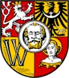 После перехода под юрисдикцию ПНР, новая власть, однако, сочла исконную польскую версию «слишком германской». С 1948 по 1990 герб представляет собой испанский щит, поделённый на две части по вертикали. В левой — польский белый орёл на красном фоне, в правой — силезский на жёлтом фоне.