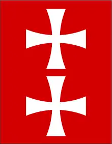Гданьская печать XV века - В период существования Тевтонского ордена герб представлял собой два белых (серебряных) равнобедренных креста, расположенных на щите красного цвета.