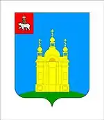 В лазоревом поле стоящая на зеленой земле золотая часовня, по краям увенчанная двумя главками, а посредине куполом с такой же главкой наверху; на всех главках — осьмиконечные кресты.
