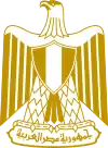 Герб Египта представляет собой остроконечный щит, дважды рассечённый на червлень, серебро и чернь, на груди у золотого орла, смотрящего геральдически вправо, держащего в лапах девизную ленту с надписью на арабском языке Арабская Республика Египет.