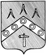 В зелёном поле серебряное стропило остриём вверх, обременённое пятью чугунными ядрами; над стропилом располагались три золотые лозы рудоискателя с ветвями вниз; а под ним — золотая кирка рукояткою вниз.