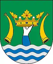 - красная корона, согласно историческим хроникам принадлежит основателю города Богемскому (чешскому) королю Пржемыслу (Оттокару II) — символ светской власти городского сообщества;