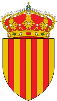 Герб Каталонии изображается увенчанный королевской короной, поскольку эти земли считались королевскими. Арагонское королевство формально существовало до 1714 года, когда в результате Войны за испанское наследство королем Испании под именем Филиппа V стал внук французского короля Людовика XIV. Арагонцы и каталонцы в той войне поддерживали другого претендента, Карла Австрийского, и оказались из-за этого подданными второго сорта. Политико-административные структуры Валенсии и Арагона были уничтожены, их привилегии отменены. Последний период войны ознаменовался взятием Барселоны 11 сентября 1714 года, которое стало решающей битвой войны, а для каталонцев — национальным поражением[4].