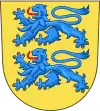 Герцогство Шлезвиг (Schleswig): в золоте два лазуревых льва, один над другим.