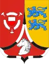 Герцогство Лауенбург (Lauenburg): в красном поле с двенадцатичастной серебряно-чёрной каймой серебряная лошадиная голова.