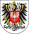 Великое герцогство Познаньское (Posen): в серебре прусский орёл, на груди которого коронованный пятилистковой короной (Laubkrone) красный щит, в нём. серебряный, вооружённый и коронованный золотом орёл (Польша).