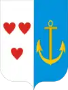 Поле рассечённое: впереди герб графства Текленбург (Tecklenburg): в серебре три (2.1.) красных сердца; позади герб графства Линден (Linden): в голубом поле золотой якорь.