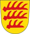 Графство Веринген (Veringen): в золоте три синих четырёхзубцовых оленьих рога (Hirchstangen) основаниями влево, один над другим.