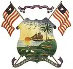 Герб Либерии представляет собой щит, на котором изображён корабль XIX-го века, прибывающий в Либерию. Корабль символизирует суда, которые привозили освобожденных рабов из Соединенных Штатов в Либерию. Над щитом расположен развёрнутый свиток, на котором написан национальный девиз Либерии: «Любовь свободы привела нас сюда» (англ. The love of liberty brought us here), под щитом также находится свиток, где указано официальное название страны, Республика Либерия (англ. Republic of Liberia).