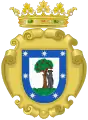 В серебряном поле с зелёной оконечностью земляничное дерево натурального цвета с зелёной кроной, усыпанной красными плодами. Справа (в геральдике — слева) от него чёрный медведь, стоящий задними лапами на оконечности, а передними опирающийся на ствол дерева. Щит имеет лазоревую кайму, обременённую семью серебряными шестиконечными звездами 3, 2, 2. Щит увенчан золотым венцом, украшенным самоцветами, с восемью зубцами, из них видимы только пять.