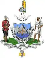На гербе, использовавшемся до 30 декабря 2006 года, присутствовали изображения белой коровы, зелёного фазана (гималайский монал), Солнца и Луны, двух солдат гуркха (у одного из них за поясом кривой нож (кукри) и лук в руках, а у другого винтовка), пиков Гималаев, двух перекрещивающихся непальских флагов и кукри, следов Горатхака (божество опекуна Гуркха) и королевского головного убора. Это вариант герба также содержал красный свиток с национальным девизом.