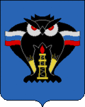 - а) центральная часть — на голубом поле белая, серебристая полярная сова, крылья которой выполнены с изображением государственного флага Российской Федерации;