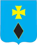 Въ голубомъ полѣ золотой крестъ, а подъ нимъ продолговатый камень, имѣющій четыре угла.