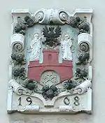 Оригинальный текст (англ.)[показатьскрыть]Herb miasta wyobraża bramę z 3 wieżami; nad środkową z nich unosi się orzeł biały z koroną królewską a na dwóch pobocznych stoją św. Piotr i Paweł, patronowie dyecezyi poznańskiej; w bramie pod wieżą środkową na czarnem polu są złożone na krzyż dwa klucze, jeden srebrny, drugi złoty, a nad nimi gwiazda; po bokach obu apostołów znajduje się półksiężyc z gwiazdą[3].