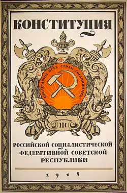 - "Конституция (основной закон) Российской Социалистической Федеративной Советской Республики, Постановление V Всероссийского съезда Советов, принятое в заседании 10 июля 1918 г."