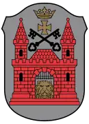 Малый герб: на щите испанского типа — золотой крест и два скрещенных чёрных ключа[1].