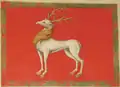 В 1724—1727 годах товарищ герольдмейстера Ф. М. Санти вёл работу по упорядочиванию и приведению в соответствие с европейскими геральдическими стандартами символов российских городов и областей для последующего изображения их на знамёнах полков, приписанных к этим городам[15]:IX[30]. До того как был отстранён от должности и сослан, Санти успел составить рисунки и описания 30 знамён, в том числе ростовского. Ростовский олень в исполнении Санти был включён[30]:127[32] в утверждённый 8 (19) марта 1730 года императрицей Анной Иоанновной «Знамённый гербовник»[14]:299[15]:XVI[30]:132—133. Его описание: «Белый олень, каков сделал Санти — рога и копыта жёлтые, под ним земля зелёная, поле красное»[14]:293[15]:XV[30]:127. Герб венчала княжеская шапка. Земельные гербы размещались на армейских знамён до царствования Павла I (1796—1801)[29].
