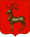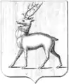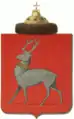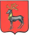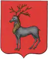 В червлёном (красном) поле серебряный олень, рога, грива и копыта золотые.