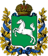 После указа Николая I, изданного в 1851 году, гербам губернских городов предписывалось обязательно иметь императорскую корону. Согласно этому указу 5 июля 1878 года были высочайше утверждены Александром II «гербы для сорока шести губерний и областей». Описание томского герба гласило: «В зелёном щите, серебряный конь с червлёными глазами и языком. Щит увенчан Императорскою короною и окружён золотыми дубовыми листьями, соединенными Андреевскою лентою». Этот герб являлся официальным гербом Томска и Томской губернии до 1917 года[12]