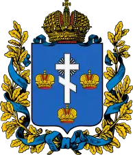В результате геральдической реформы 1865 г. было признанно недопустимым использование государственной символики в гербах городов и губерний. К 100-летию Херсона придворный герольдмейстер Б. Кене разработал для города и губернии новый герб: «на фоне синего щита, посередине серебряный православный крест, окружённый золотыми императорскими коронами. Серебряный крест означает возрождение на Руси старейшей епархии — Херсонесской, начавшейся с основания города. Три короны являются аллегорией трех исторических лиц, связанных с крещением Древнерусского государства — византийских императоров Василия и Константина, а также их сестры Анны, впоследствии жены князя Владимимра Святого.»
