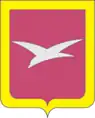 В пурпурном поле с золотой узкой каймой серебряная чайка, летящая вправо с воздетыми и распростертыми крыльями