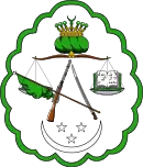 В сентябре 1919 года в чеченском ауле Ведено имам Узун-Хаджи провозгласил независимость Северного Кавказа и создание Северо-Кавказского эмирата, в который вошли горные районы Дагестана, горная Чечня и часть Ингушетии. Государство не имело четких границ и представляло собой монархию на основе норм шариата, идеологией эмирата являлся панисламизм. Эмират был признан Азербайджаном, Грузией, Турцией[1]. В 1919 году эмират предпринял выпуск бумажных денег (кредитных билетов) достоинством 5, 25, 50, 100, 250, 500 рублей. На лицевой стороне кредитных билетов изображалась эмблема эмирата[1]. Герб (эмблема) эмирата представлял собой поставленные пирамидой винтовку и саблю, над ними чалма хаджи с короной. Поверх всего весы, вероятно символизирующие справедливость. На чашах весов с одной стороны зелёное знамя Газавата[1] с навершием в виде полумесяца (навершие изображалось не всегда[1]), а с другой стороны раскрытая книга (вероятно, Коран[1]). В нижней части герба располагался полумесяц и три звезды[1]. В марте 1920 года под давлением большевиков Северо-Кавказский эмират был ликвидирован, Узун-Хаджи получил пост муфтия Кавказа, а летом умер. |
