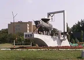 12 июня 2003 года в г. Энгельсе был открыт памятник (скульптор А. А. Садовский), воспроизводящий сюжет муниципального герба — на постаменте выходящий из рамки щита бык с солонкой на спине.