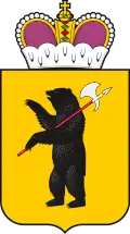 Герб Ярославской области представляет собой помещенного в золотом щите чёрного восстающего медведя, держащего левой лапой на левом плече серебряную секиру с червленым (красным) древком. Щит венчает ярославская княжеская шапка, соответствующая узаконению 1730 года.