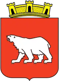 Герб представляет собой белого полярного медведя, на красном фоне, повернутого в левую сторону, защищающего город. Герб венчает золотая корона, в виде городских крепостных стен с тремя башнями.