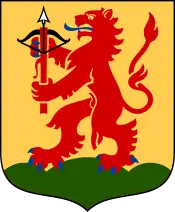 В золотом поле на зеленом трёхгорбом холме червлёный лев с лазоревым вооружением, держащий в передних лапах червлёный арбалет с чёрным луком и серебряным наконечником.