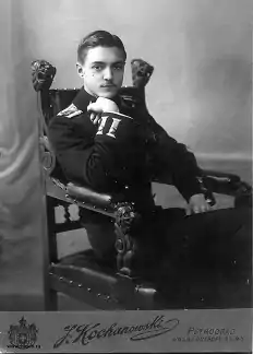 Окончил Первый кадетский корпус (1913), затем Отдельные гардемаринские классы Морского корпуса, 30 июля 1915 выпущен мичманом с зачислением в 1-й Балтийский флотский экипаж и стал вахтенным офицером на линкоре «Петропавловск». После большевистского переворота уволился с флота; во время Гражданской войны служил во ВСЮР и Русской армии Врангеля. 28 марта 1920 произведен в лейтенанты за отличие по службе. В составе 2-го Днепровского речного отряда в августе 1920 участвовал в боях под Никополем, с сентября состоял в качестве флаг-офицера при начальнике 2-го (Азовского) отряда судов Черноморского флота, старшем морском начальнике Керчи контр-адмирале М. А. Беренсе. После Крымской эвакуации служил на кораблях Русской эскадры в Бизерте. С августа 1921 по январь 1922 был старшим офицером, в августе 1922 — сентябре 1924 командиром эсминца «Беспокойный».