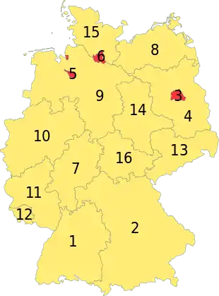 | 16. Свободное государство Тюрингия | Эрфурт | Freistaat Thüringen | Erfurt |