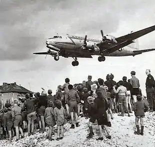 После проведения союзниками в своей оккупационной зоне 20 июня 1948 денежной реформы (замена старой обесценившейся рейхсмарки на новую марку), советские оккупационные власти в свою очередь 23 июня 1948 провели аналогичную свою денежную реформу в Восточной зоне. Так как экономические идеологии стран-победительниц кардинально расходились, советские оккупационные власти закрыли границы, полностью блокировав тем самым и Западный Берлин, находившийся внутри зоны советской оккупации. Западными союзниками был организован воздушный мост, по которому американская и британская транспортная авиация снабжала население города. Блокада Западного Берлина продолжалась год.