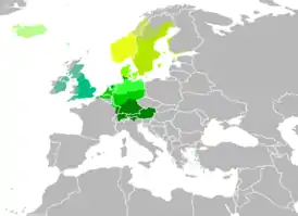 Формирование национальных литературных языков завершилось в Англии в XVI—XVII веках, в скандинавских странах — в XVI веке, в Германии — в XVIII веке. Распространение английского языка за пределы Англии привело к созданию его вариантов в США, Канаде, Австралии. Немецкий язык в Австрии представлен его австрийским вариантом, а в Швейцарии — швейцарским.