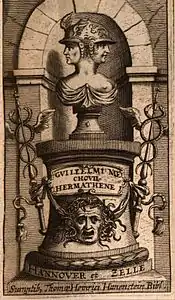 Гермафина одной из первых размещалась на гермах. Впоследствии на них стали помещать и других сдвоенных богов и героев; в таких случаях гермы получали специальные названия — Гермеракл (Гермес и Геракл), Гермарес (Гермес и Арес) и другие.[4][5]